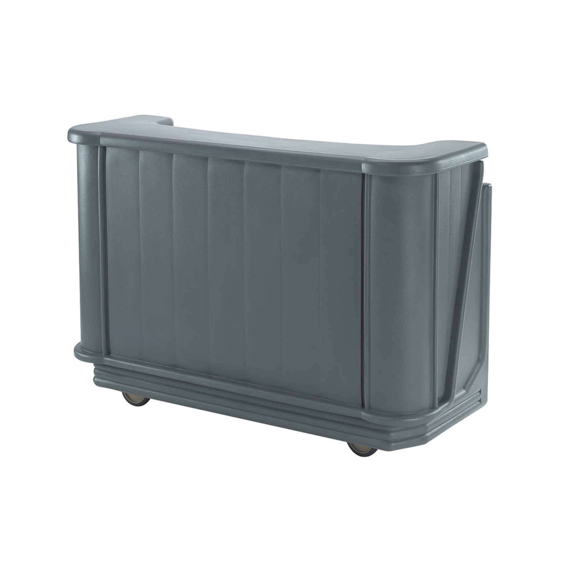Mobilny bar Cambro w kolorze szarym, wykonany z trwałego tworzywa sztucznego. Wymiary: 171 × 70 × 120 cm. Mobilny i funkcjonalny – idealny do serwowania napojów na eventach i w cateringu.